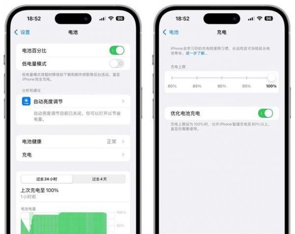 打开“优化电池充电”: 【设置】>【电池】>【电池健康】> 打开“优化电池充电”(iOS 18以下)或【设置】>【电池】>【充电】> 打开“优化电池充电”并将“充电上限”调整到90%(iOS 18及以上)。
