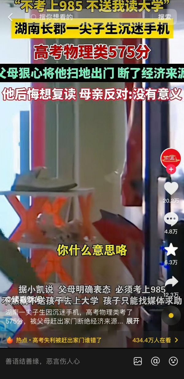 高考生砸家闹剧:过度教育酿苦果 湖南有...全文
