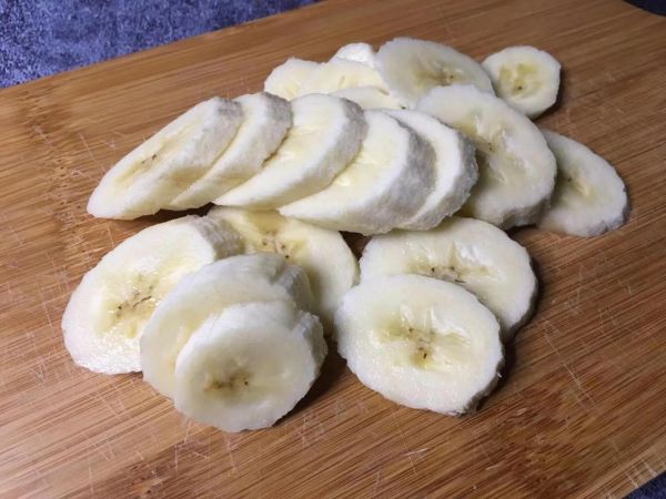 第一步:准备一根熟透的香蕉,剥皮后再切成薄片。