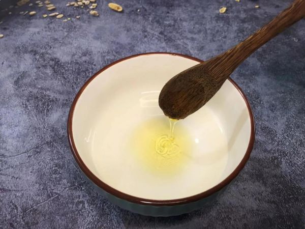 第三步:碗中倒入100毫升的温水,再加一小勺蜂蜜,然后用勺子把蜂蜜搅拌化开。
