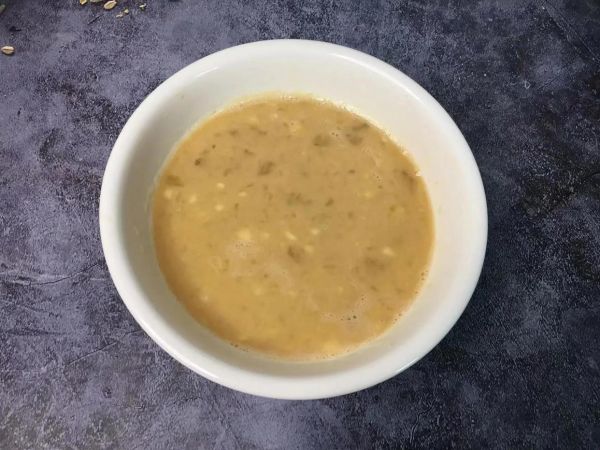 第五步:接着用筷子搅拌均匀,在这里可以多搅拌一会,使鸡蛋、蜂蜜水和香蕉泥完全融合在一起,防止香蕉泥沉底,搅匀后用勺子撇去表面的浮沫。