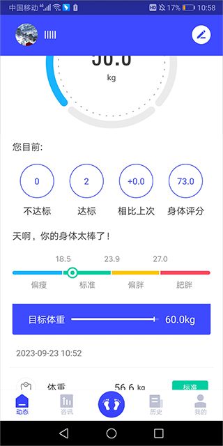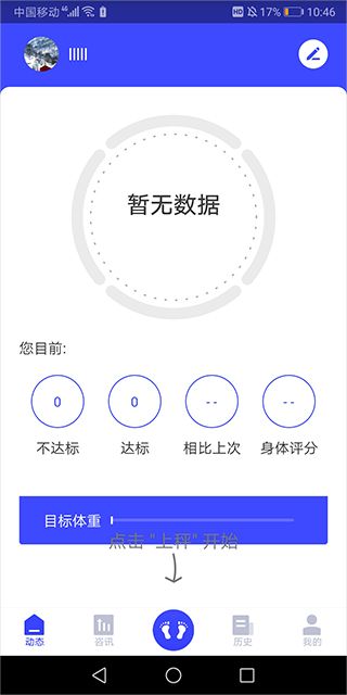 1、进入到应用页面中就可以实时看到自己最近一次上秤时的体重数据