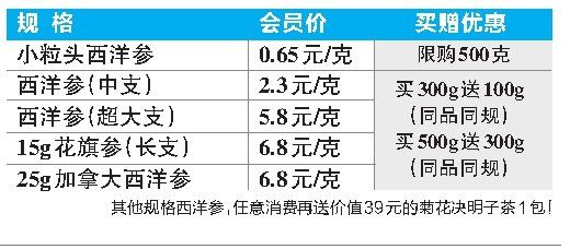 其他规格西洋参,任意消费再送价值3 9元的菊花决明子茶1包!