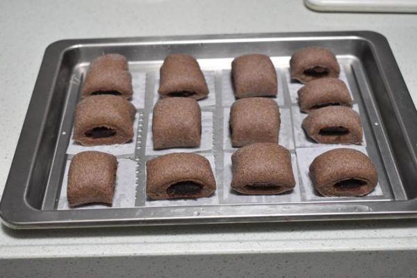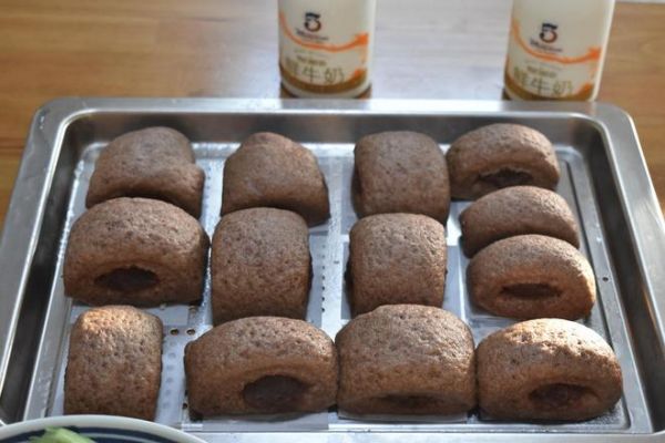 平时我会用白面做馒头,为了让馒头更营养,我会把白面和些黑全麦面粉搭配做馒头。或许有的朋友会问能否全部用黑全麦面粉,我自己用黑全麦面粉做过两三次馒头,口感很粗糙,家人都不太喜欢。我把中筋面粉和黑全麦面粉按照1:1比例搭配做馒头,家人比较能接受黑全麦馒头。为了让黑全麦更美味,我把面团擀成面片时,加入红豆沙当馅料,红豆沙卷在馒头中间,把黑全麦馒头做成迷你豆沙卷,豆沙卷蒸好后一口一个,香甜味美。