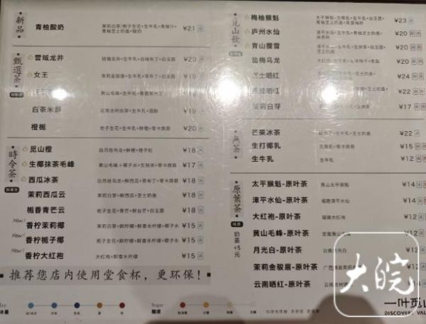 价格方面,奶茶店中纯茶类产品的价格相对其他产品较低,如一叶觅山的纯茶价格为12元或14元,同品牌其他产品最高则可达24元。