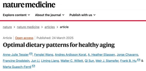 2025年3月24日,哈佛大学的研究人员在国际顶尖医学期刊 Nature Medicine 上发表了题为:Optimal dietary patterns for healthy aging 的研究论文。