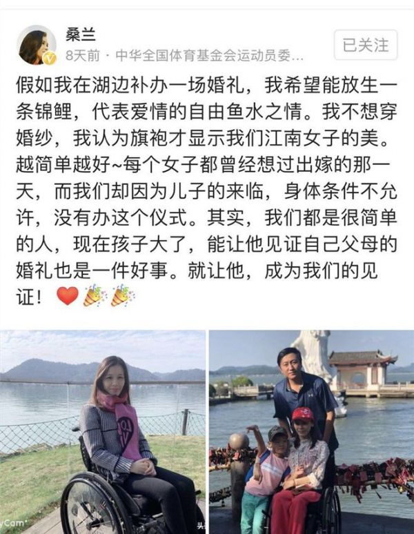 瘫痪21年的桑兰近照,丈夫透露即将举办婚礼,总导演主持人很出名