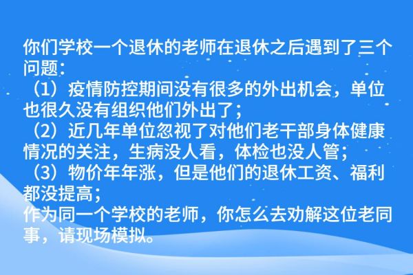 你们学校一个退休的老师在退休之后遇到了三个问题: