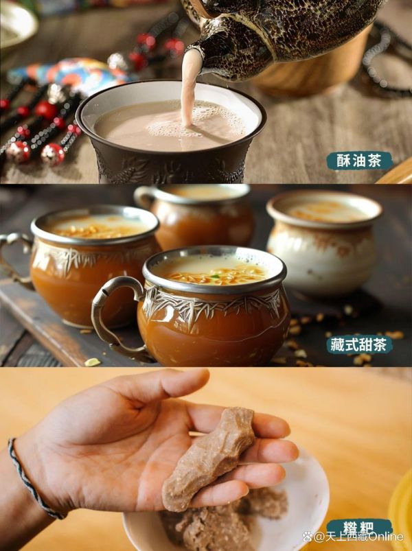 首先是酥油茶,这堪称西藏人的日常必备饮品,将酥油、茶叶与盐混合,其独特味道令人赞叹。饮用一口,不仅能温暖身体,更能温暖心灵。