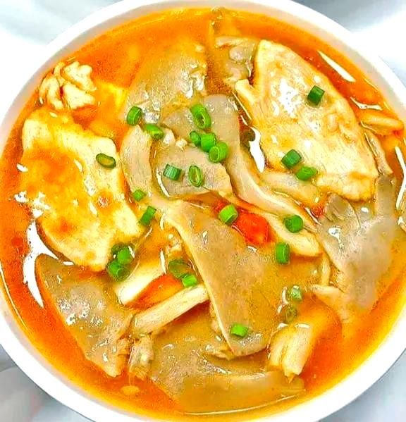 (4)盖上锅盖,大火煮至汤水开锅后,转小火煮约5分钟。最后,关火并盛出汤品至碗中,撒上适量的葱花进行点缀即可。这款汤品不仅制作简单,而且营养丰富,低脂低卡,好喝且不会长胖。