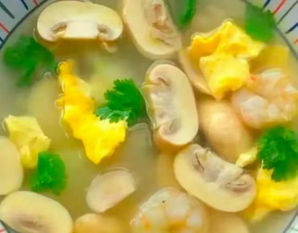 (5)最后,关火并盛出汤品至碗中,即可享用这款汤鲜味美、营养丰富的冬瓜口蘑鸡蛋汤。这款汤品不仅制作简单,而且适合各年龄层人群食用。
