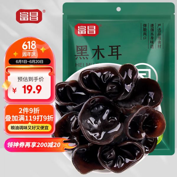 富昌 东北黑木耳208g 肉厚无根菌菇 黑龙江特产山珍干货炒菜火锅凉拌京东月销量1万好评率99%无理由退换京东配送¥27.9购买