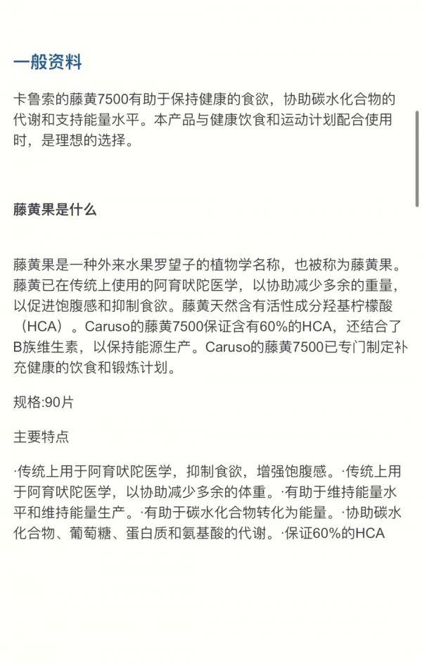 藤黄果里天然含有一种超棒的活性成分——羟基柠檬酸(HCA)。你知道吗?Caruso的藤黄7500可是含有高达60%的HCA呢!还结合了B族维生素,让我们的能量生产更顺畅。