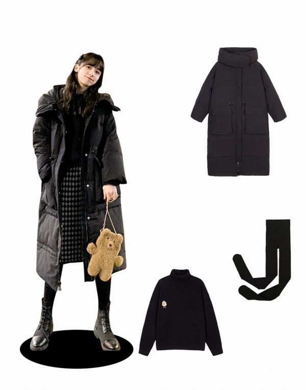 最最最显瘦的黑色羽绒服,保暖性能也不差,配合格纹半身裙,把同色系的高级感展现淋漓尽致。一出场就气场开挂,小个子也可以“高人一等”。