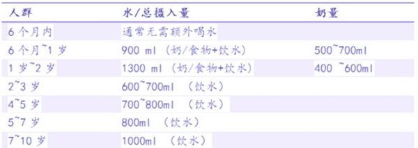 根据指南,对于6月龄及以下的宝宝,除了充足的母乳或配方奶之外,无需额外补充水分。但在宝宝感冒或发烧时,可以适量喂食一些水。至12个月大的宝宝,每日所需水分总量约为900毫升。然而,这900毫升中,有大约500至700毫升是由母乳或配方奶所提供的。1至2岁的宝宝,其每日所需水分总量为1300毫升,其中约400至600毫升来自于母乳或配方奶的摄入。