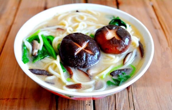 香菇和菠菜的搭配讲究严格清洗香菇并切片,与煮至八成熟的面条和新鲜菠菜一同烹制。在热锅中先炒香香菇片,随后加入清水煮至汤汁浓稠,注重调味与营养,最后淋入香油和酱油增香。