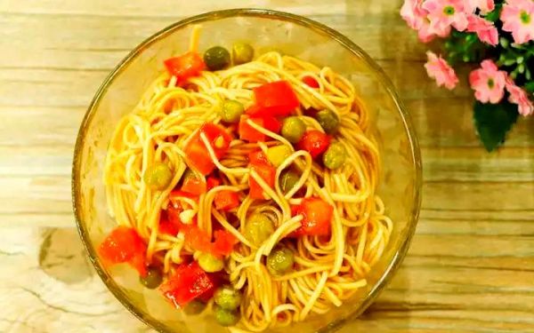 这道茄汁拌面,通过翻炒胡萝卜与西红柿而来的茄汁酱汁,搭配豌豆及调料,成就了酸甜开胃的口感。首先将胡萝卜和西红柿切成丁状,经过翻炒后加入挂面和豌豆,淋上调好的酸甜酱汁,色香味美。