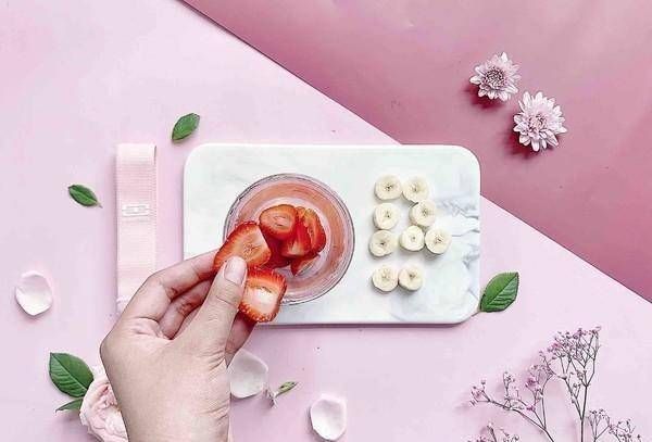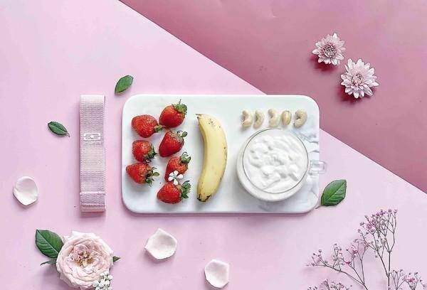 草莓7个、香蕉1个(小)、腰果5个、酸奶300克、任意坚果、任意椰子、任意水果、任意鲜花