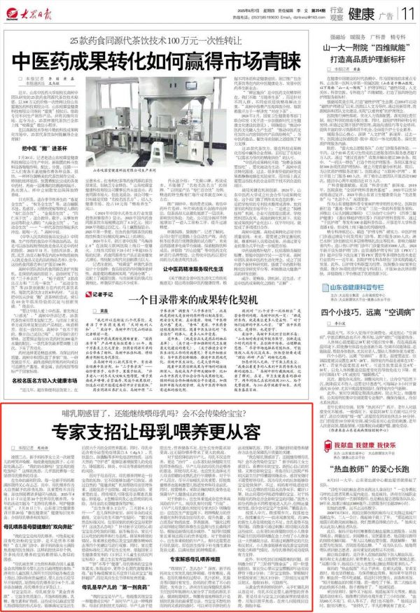 《大众日报》健康版:专家支招让母乳喂养更从容