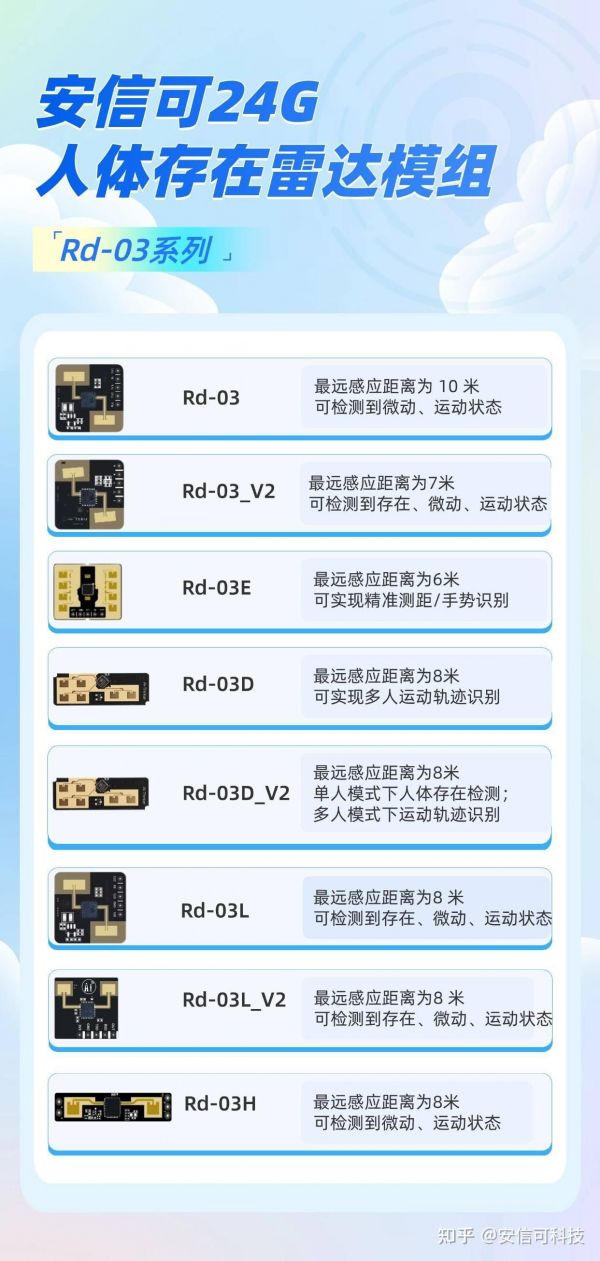 安信可Rd-03系列是一个成熟且持续演进的24GHz人体感应雷达模组平台,不仅覆盖了从成本敏感型到高端应用的全线需求,还具备形态丰富、认证齐全、开发友好等多项优势。