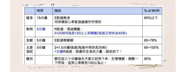 此外,专业的运动教练还可以通过特定的骑车测试来测定最大心率。这一测试适用于入门或初阶的选手,即40公里成绩在70分钟以上的跑者。