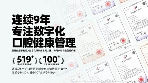 Oclean欧可林作也是行业技术创新的引领者,率先推出全球首款磁悬浮无刷马达智能化牙刷、首款触摸屏智能化牙刷等突破性产品,累计获得519项全球专利,持续以创新科技推动产品升级。