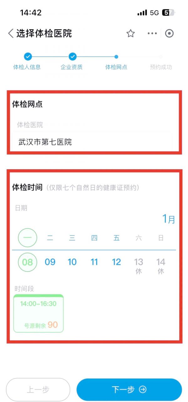 在完善企业信息后,您需要进一步选择适合的体检网点,并确定体检的日期和时间段。选择体检网点和时间需谨慎,直接影响预约体验,请务必谨慎选择。