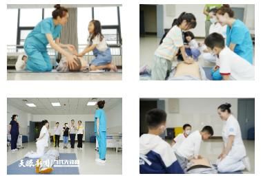 护理骨干樊云云和洪婷向同学们介绍了《关键时刻能救命的技术--心肺复苏术》,并用模拟人进行心肺复苏的现场演示,生动展示心肺复苏术的基本步骤和正确手法,同学们聚精会神地听着老师所讲的每一个知识点,专注地观察着老师的每一个示范动作,还不时举手向老师提出自己的疑问,现场气氛热烈。随后,现场医生组织学生们分组,结合模拟人进行心肺复苏培训,模拟急救场景中的心肺复苏过程,让同学们身临其境体验心脏骤停患者的急救。