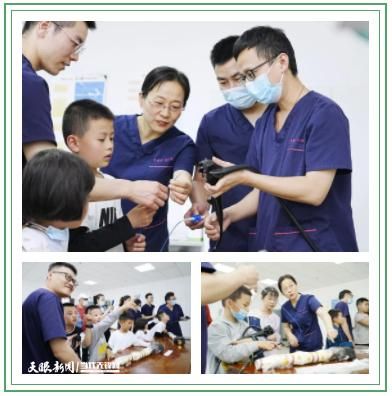 在胃镜模拟操作环节,由专业医护人员为同学们演示了胃镜的使用方法和操作过程,并手把手地教他们进行胃镜模拟操作及内镜下取异物的方法。“原来胃镜是这样做的。”有的同学不禁感叹,通过实际操作、图片或视频等形式,更直观地了解了医生如何在诊治中使用胃镜。