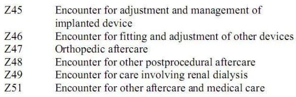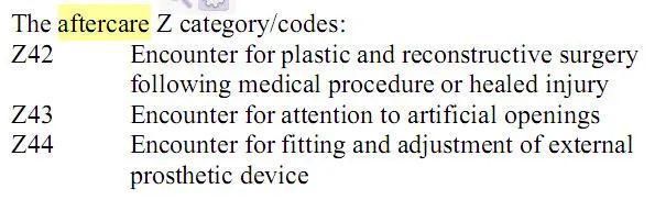 可见,后续治疗指的是“Aftercare”。在ICD-10-CM编码指南中,后续治疗编码包括: