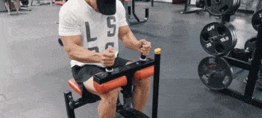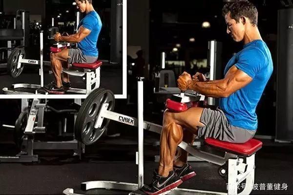 不过很多健身房都见不到这个器械,所以找个坐凳,脚下垫两片杠铃片,膝盖区域放一块杠铃片也能够实现类似的动作。