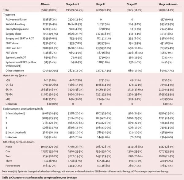 这项利兹大学Adam W Glaser教授团队牵头的研究,入组了不同分期,并接受了不同治疗方式的前列腺癌患者,全面考量并评估了其功能性转归(包括泌尿系和肠道功能、性生活、性能力和激素水平等)以及现有的医疗服务导致的潜在影响。