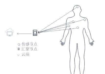 将众多可穿戴设备自组织成网络,便形成了覆盖人体各部位的人体传感器网络,简称人体物联网。人体物联网采用星型拓扑结构,高效监测人体生理信息,方便集成到智慧医院系统中。如图2所示,人体物联网的工作流程是:各个感知节点负责采集人体的各项生理信息,如心电、脑电等,并将这些信息通过无线方式发送给汇聚节点。随后,汇聚节点将接收到的所有信息汇总并传输至云端处理系统进行进一步的分析和处理。