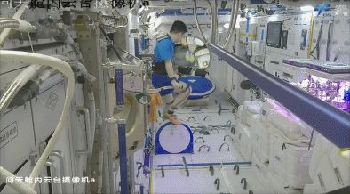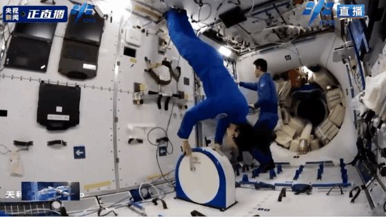 航天员在轨演示反向骑太空自行车