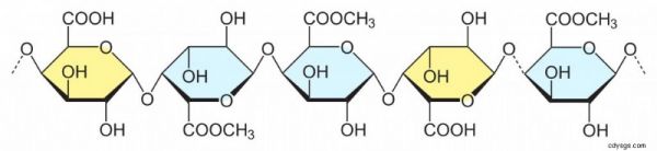 半乳糖醛酸通常被甲氧基、酰胺基等酯化。酯化度(DE)是果胶主链上聚半乳糖醛酸的甲基化、乙酰化和酰胺化的总和。