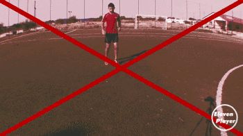 正确示范:摆动腿在侧向摆动时,要一胯部为轴心小腿跟随着大腿去摆动。从这个角度我们可以更加清楚的看到将摆动腿的膝盖摆过支撑脚脚踝的位置。