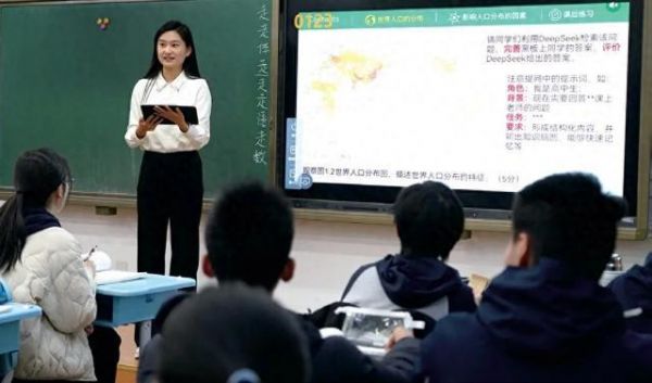 北京市第八十中学地理教师在课堂上使用AI辅助教学
