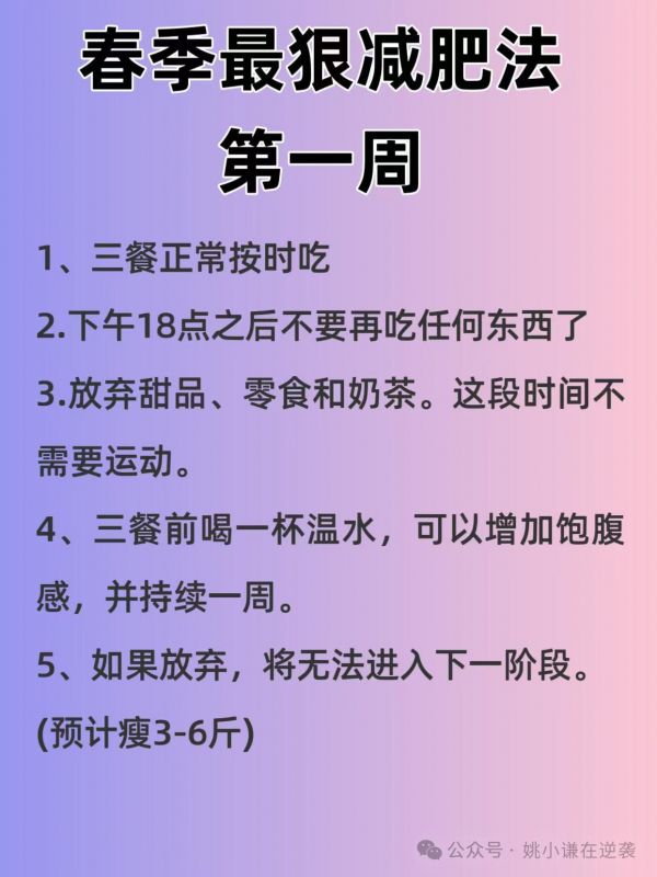 春天是万物复苏的季节,也是我们开启减肥计划,塑造美好身材的最佳时机。中医建议的“春断食”减肥法,尤其适合体重在95 - 180斤的朋友。接下来,让我们一起走进这个为期四周的春季最狠减肥法,见证蜕变的奇迹。