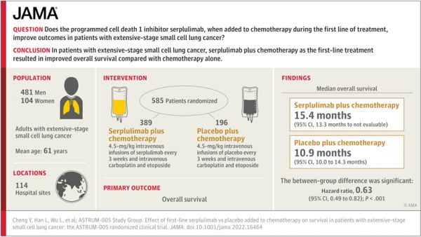 重磅!全球首个登上国际顶级期刊JAMA的小细胞肺癌免疫治疗临床研究,H药 汉斯状®联合化疗一线治疗广泛期小细胞肺癌阳性结果发布