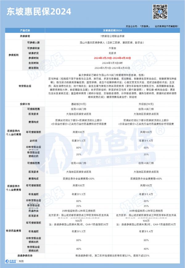 东坡惠民保2024是眉山集团年最新的惠民保险产品,已经开启投保通道,