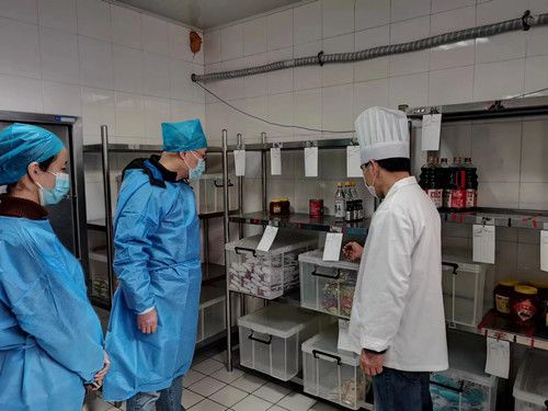 3月31日,施广益、宋秋明以及食品安全员一同检查了食堂。他们对食堂的环境卫生、个人卫生、加工场地、库房管理、记录台账、体温监测等情况进行了全面、细致地检查。重点检查了从业人员健康证、进货查验等台账、仓库管理、食堂人员操作过程等,并要求根据当天发现的问题即时整改并记录。