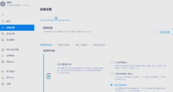 请先检查软件设置,特别是在华硕管家MyASUS中, 可以调节充电模式以延长电池寿命。用户可以通过设定RSOC(相对充电状态)的最大功率,来选择最适合自己的模式,从而延长电池的使用寿命。可选模式包括:完整充电、平衡保养及最佳保养。