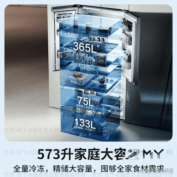 这款松下冰箱的容量确实相当可观,总共有573升,冷藏、冷冻、变温室都有各自的空间。对于喜欢囤货的家庭,或者人口较多的家庭来说,使用起来特别方便,各种食材都能安排得明明白白。
