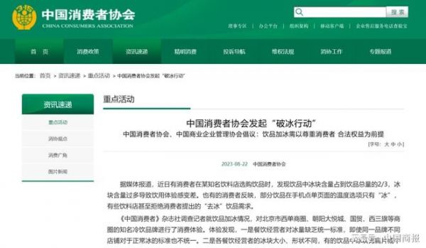 中国消费者协会、中国商业企业管理协会倡议:饮品加冰需以尊重消费者合法权益为前提