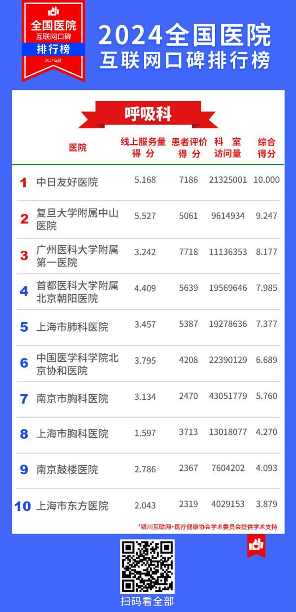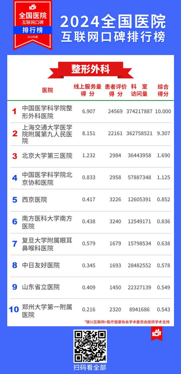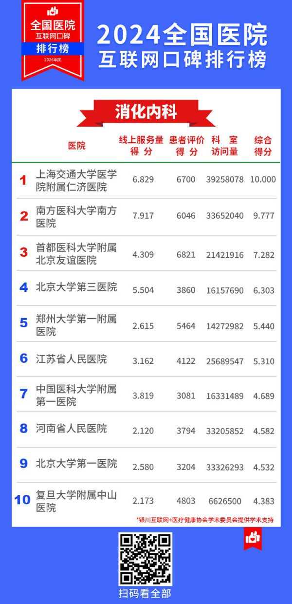 全国医院互联网口碑排行榜发布!上海市10家医院蝉联14个专科榜首