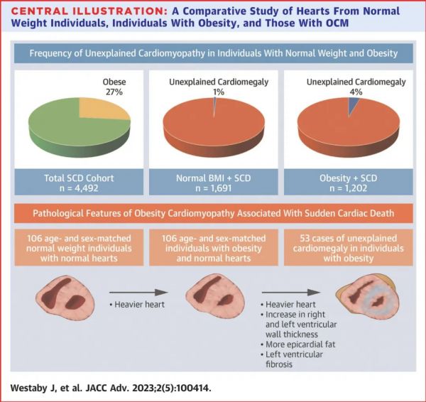 来源:Obesity Cardiomyopathy in Sudden Cardiac Death:A Distinct Entity? A Comparative Study. JACC Adv. 2023 Jul, 2 (5) 100414