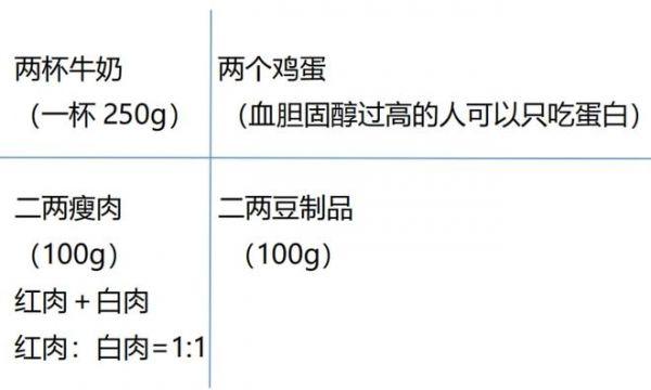 餐盘主角“肉蛋奶”:肉类或鱼类100~125g (含20~25g蛋白质) ;谷薯约50g;蔬菜100~150g。