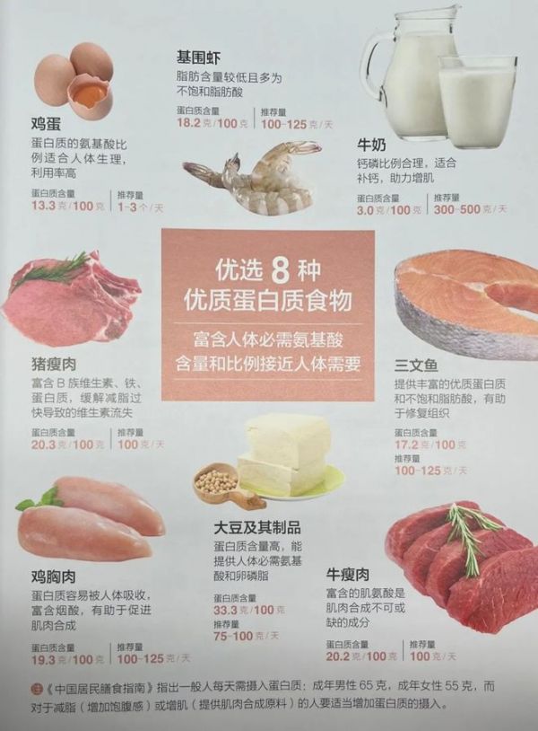 于康教授和李宁老师特别优选了8种我们生活中常见的优质蛋白食物,这些食物富含人体必需氨基酸,且含量和比例接近人体需要。