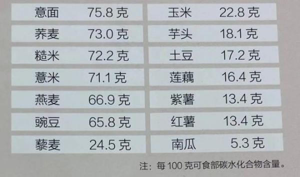 说完了蛋白质,减脂增肌的另一大“巨头”——碳水化合物怎么能少得了?其实碳水化合物分为两类,一类是我们食用较多的、升糖指数较快、易转换成脂肪的简单碳水 (表1) ,如白米饭、面条、馒头等;另一类就是我们减脂增肌中较为推荐的、升糖指数较低、脂肪合成较少的复合碳水 (表2) ,如燕麦、玉米、红薯、南瓜等。