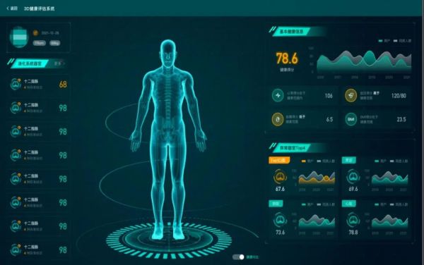 因此,“华疗健康指数系统”不仅仅局限于躯体健康总得分这一数字,还可以为大众提供异常指标分析、器官健康评估、3D健康模型、疾病可视化科普、相对健康程度、疾病风险预警、体检覆盖率、健康及医疗建议等在内的多项信息及辅助功能。
